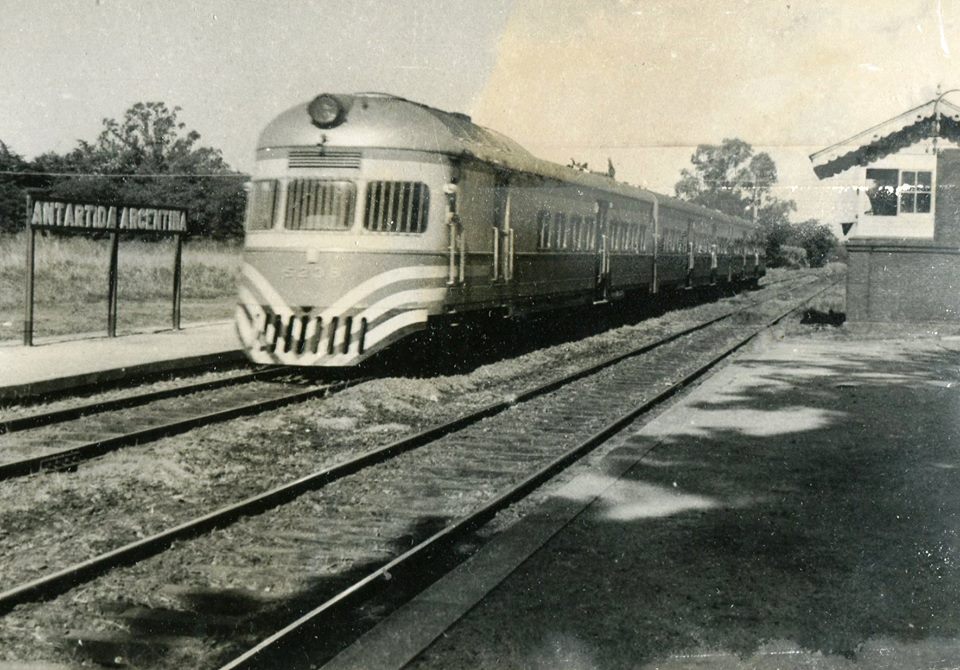 Un Tren Diesel FIAT 7131, se detiene en la estación Antártida Argentina (Fisherton), con rumbo hacia Cañada de Gómez ,